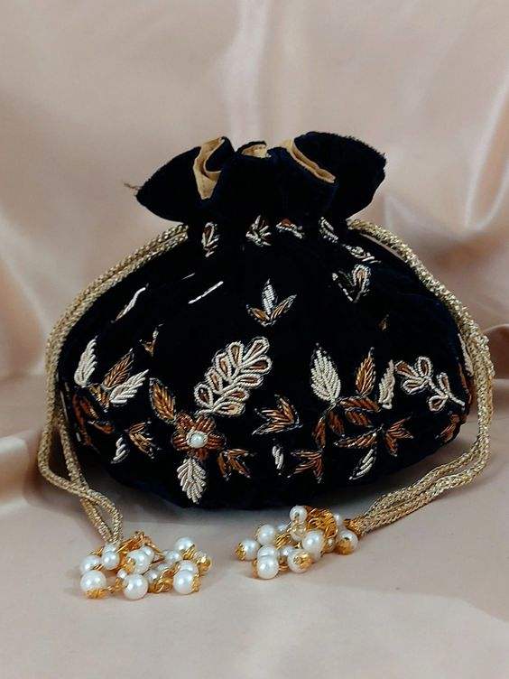 Chic Zari Travail Soie Potli Pour Femmes Sacs De Mariage De Mariée Soirée Potli Sac Pour Femmes De Luxe Designer Accessoire Pour Les Mariages