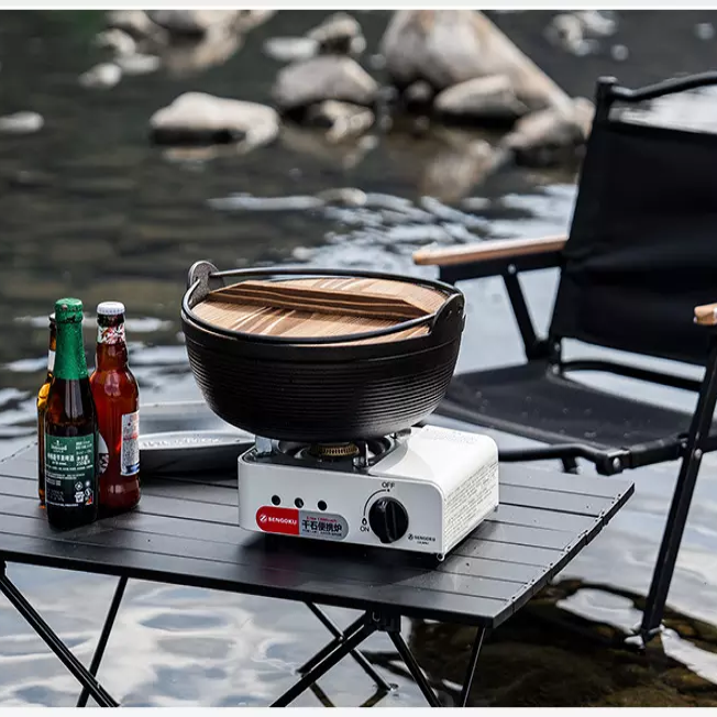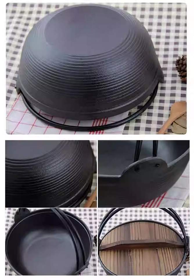 Pot en argile pour la cuisson Pot en fonte recouvert d'émail Pot à soupe japonais épais Casserole avec couvercle en bois pour la cuisine de camping
