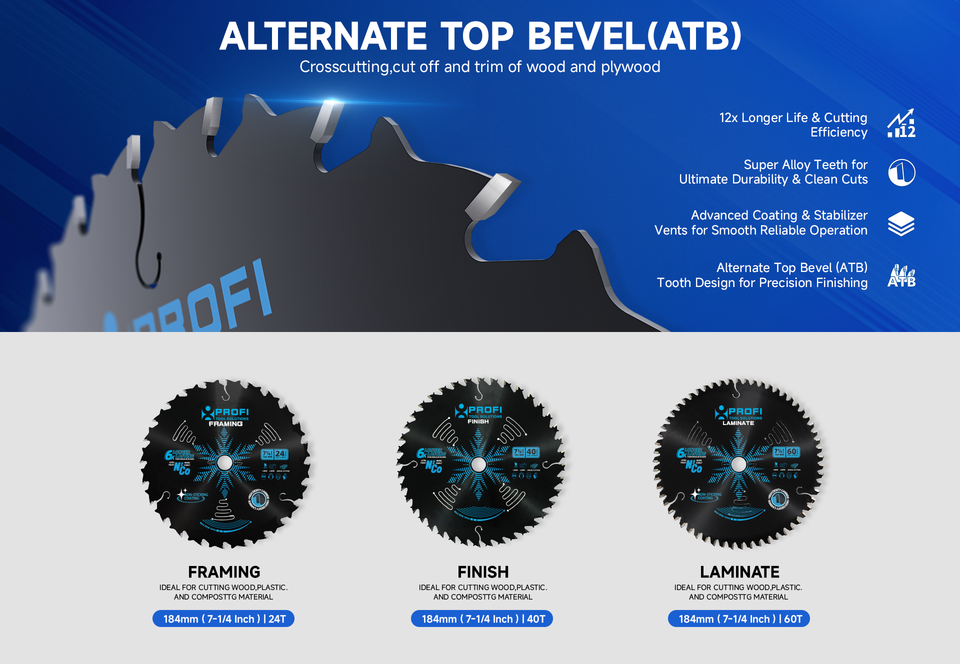 Lames de scie circulaire Clean Cutting de 7 1/4 pouces avec pointes en carbure TCT pour le travail du bois et la découpe du bois stratifié