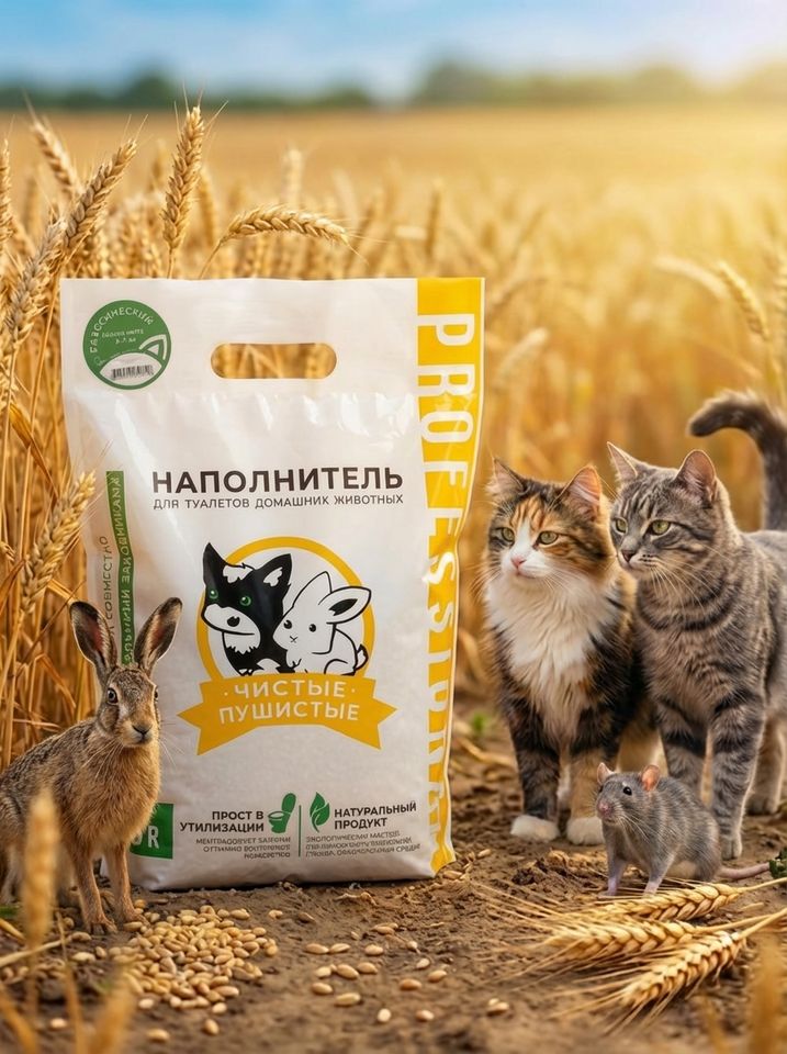 Litière pour chat Clean Fluffy Wheat, parfum classique – granulés agglomérants naturels pour chats, rongeurs et lapins, 5L