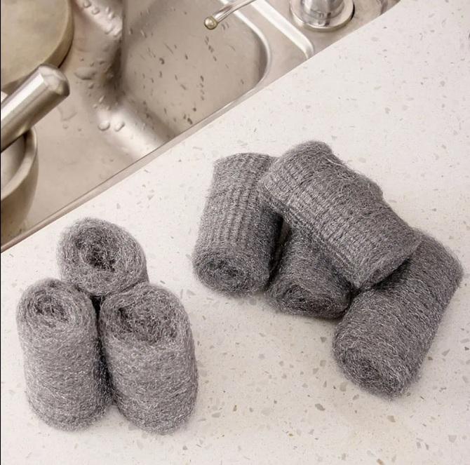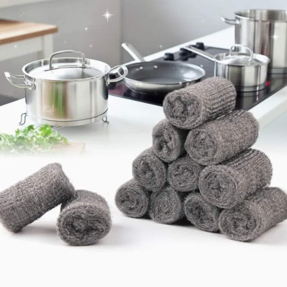 Cleando Récureur de laine d'acier prédécoupé épurateur d'acier inoxydable de marque privée pour le nettoyage de la cuisine Lot de 12