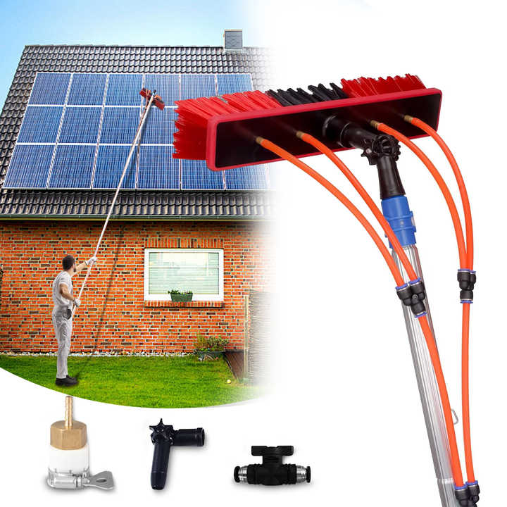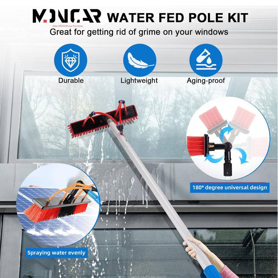 MONCAR 26Ft Reach Water Fed Pole Kit Panneau Solaire Brosse De Nettoyage