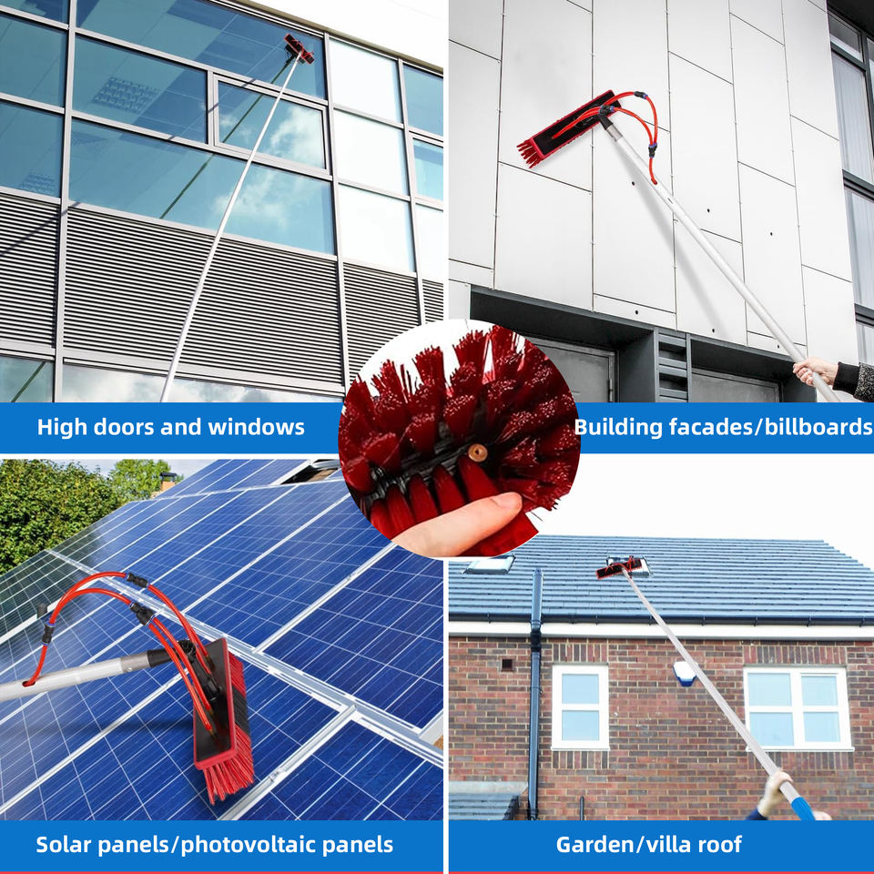 Outil de nettoyage pour toit de fenêtre en verre brosse en verre extérieure équipement de lavage Kit de poteau alimenté en eau Kit de nettoyage de panneau solaire réglable