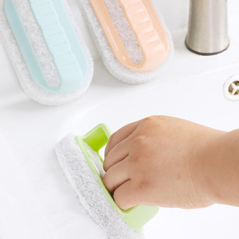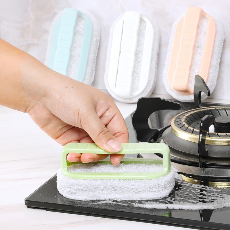 Éponge de nettoyage rectangulaire épaisse avec manche pour vaisselle et cuisine, détachant puissant