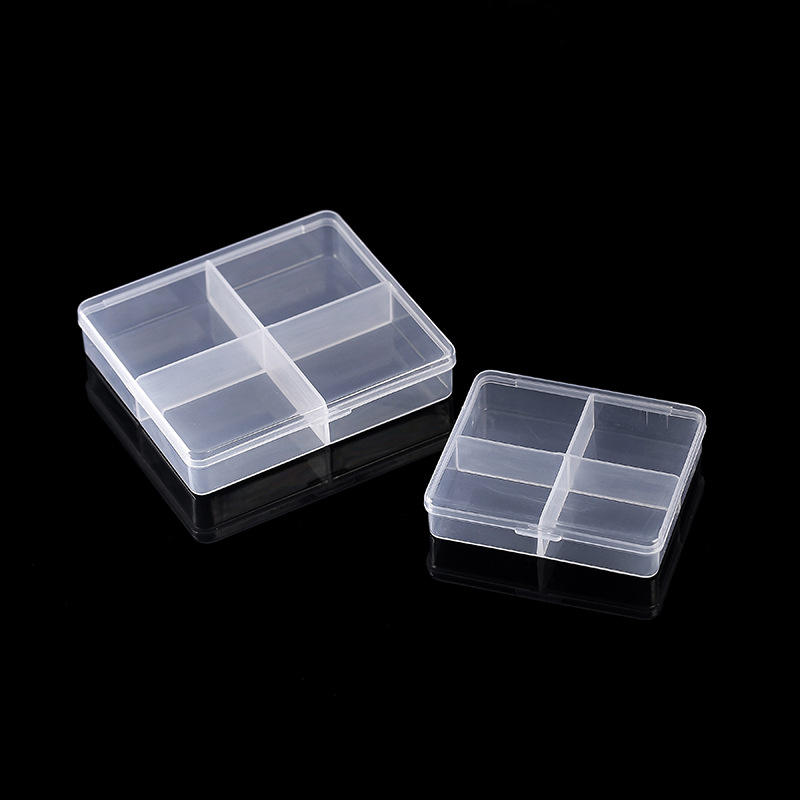 Boîte de rangement en plastique transparente à 4 compartiments avec couvercle pour accessoires de bijoux et outils de nail art, organisateur de bureau