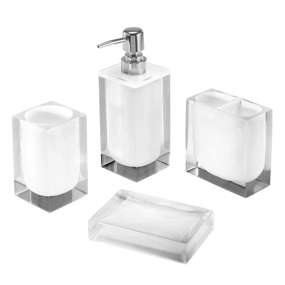 Ensemble d'accessoires de salle de bain en acrylique transparent, parfait pour les vanités modernes et les décors de salle de bain minimalistes ou pour l'aménagement de salle de bain, provenant d'Inde