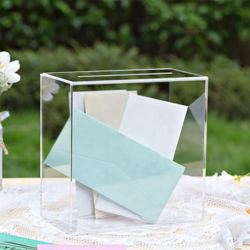 Boîte à cartes en acrylique transparente épaisse, DIY, pour mariage, vierge, sans impression, grande taille 10x10x5.5 po, pour décoration de réception, collecte de fonds, boîte à monnaie