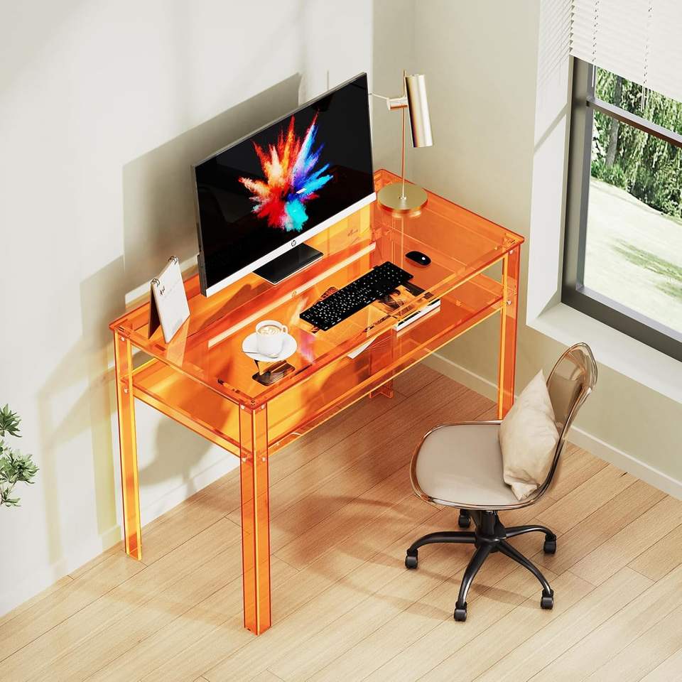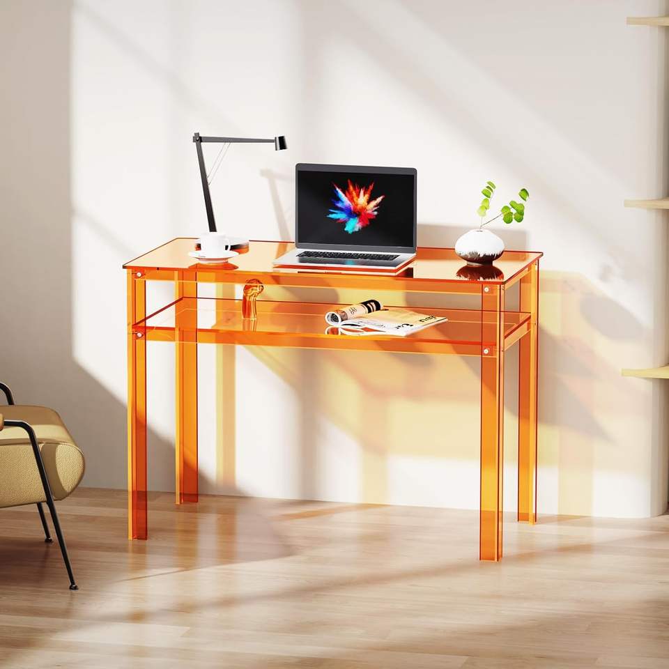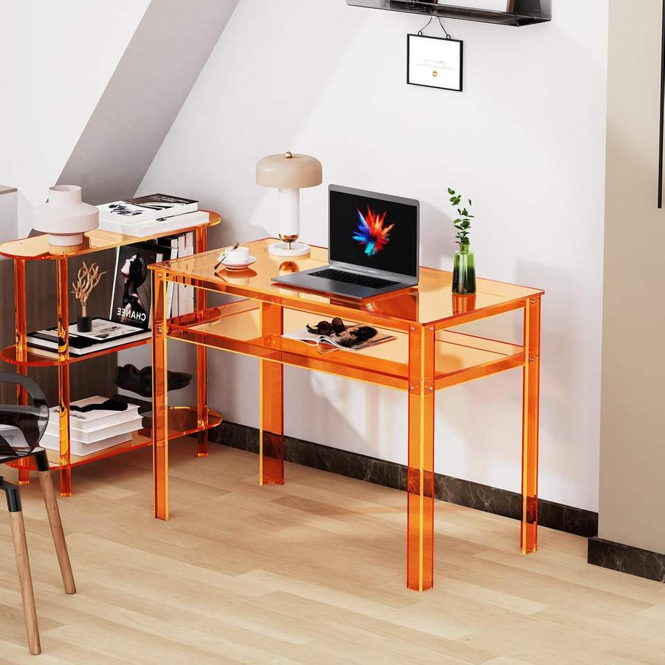 Bureau en acrylique transparent avec rangement ouvert, bureau d'ordinateur pour le bureau à domicile, table d'étude