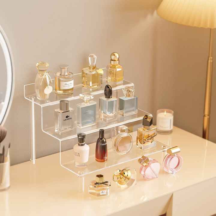 Support de Présentation en Acrylique Transparent Étagère Rehausseur pour Parfum Figurines Maquillage Support à Gâteaux