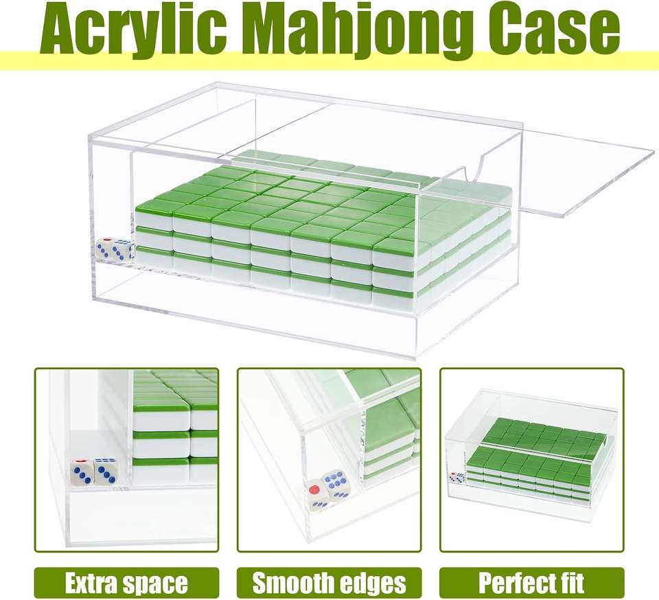 Organisateur de rangement pour Mahjong en acrylique transparent, boîte personnalisée durable avec couvercle, design empilable pour accessoires de jeu à domicile