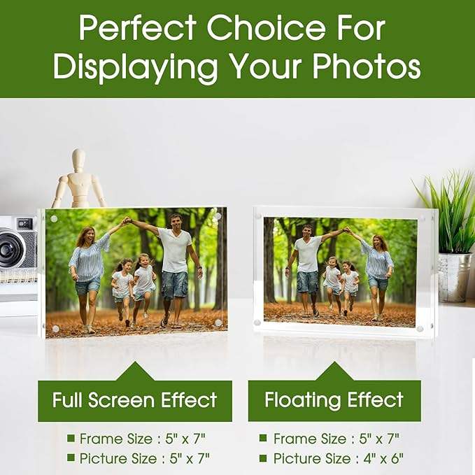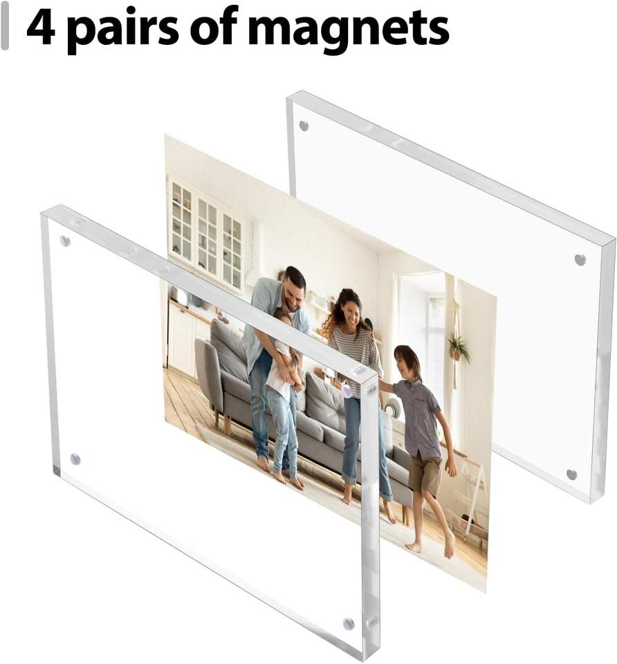 Cadre photo magnétique N52 en acrylique transparent épais double face pour bureau, supporte la taille et le logo personnalisés
