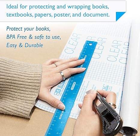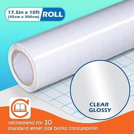 Rouleau de papier contact transparent pour livres et artisanat, 17,5 po x 10 pi, adhésif pelable et repositionnable, protège-livre en plastique