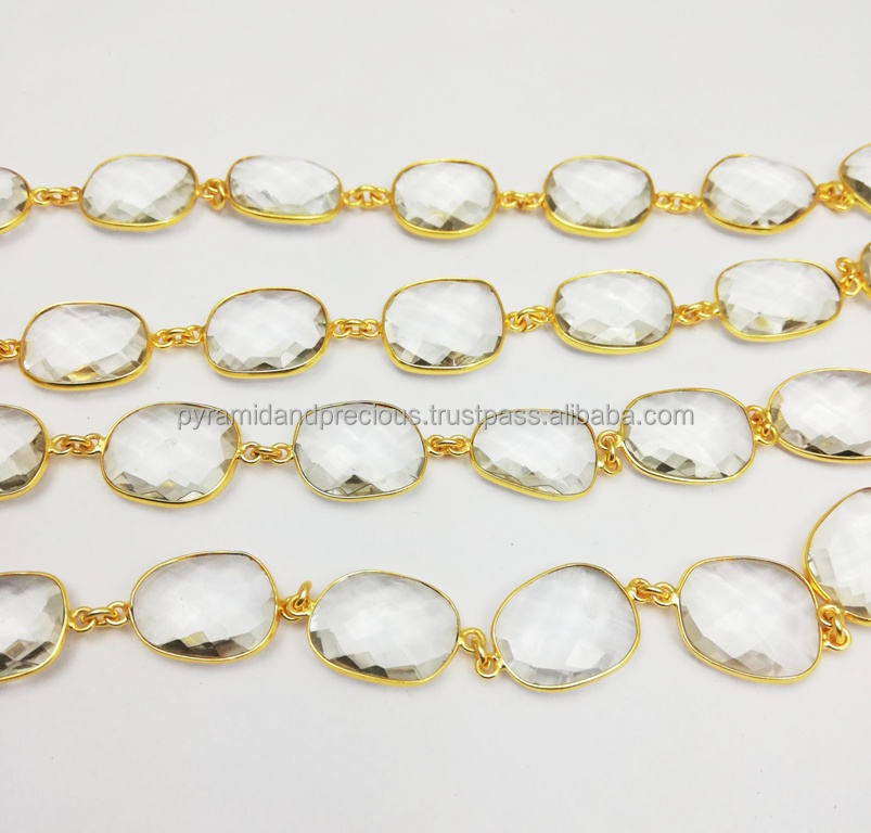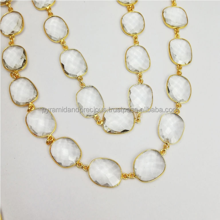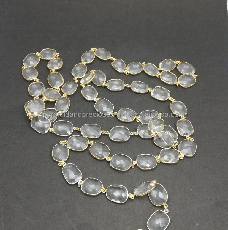 Clear Crystal Gemstone Gold Plated Bezel Connector Chain Nanplaetsilver GBC