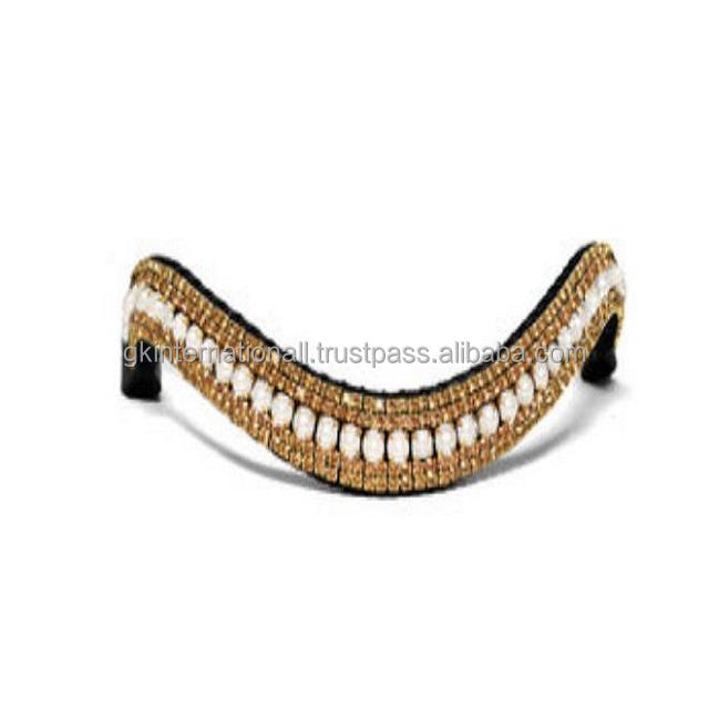 Bracelet de luxe en cuir véritable pour cheval, chaîne en métal doré et blanc avec perles, disponible en toutes les tailles et couleurs personnalisées, 5 rangs