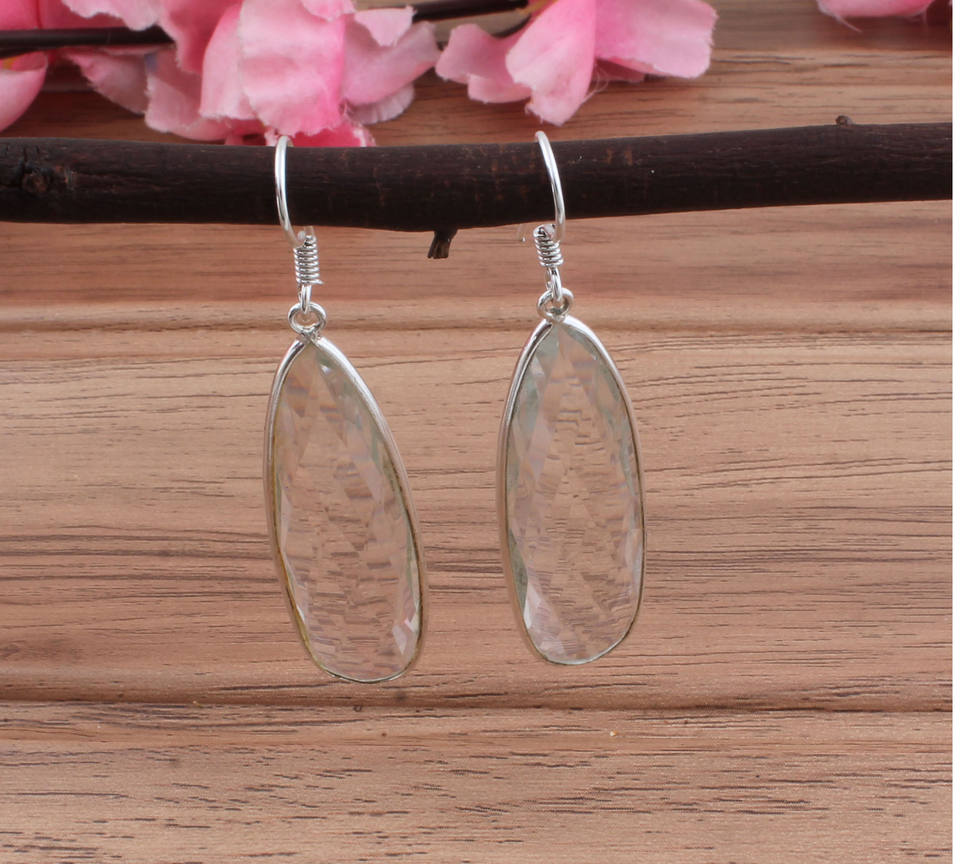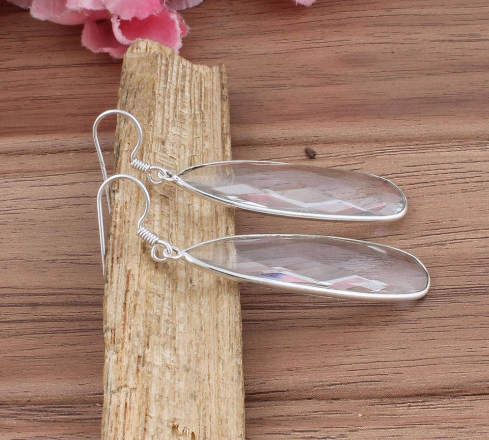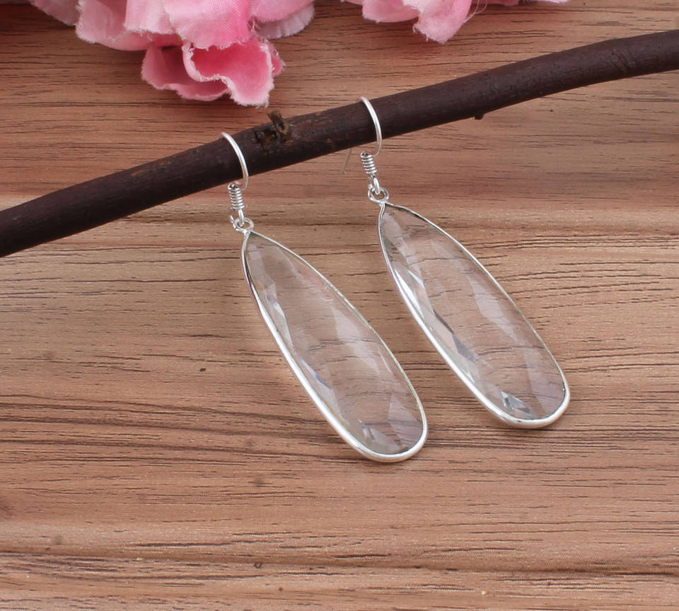 Boucles d'oreilles pendantes en cristal de quartz transparent, argent sterling 925, bijoux de luxe, cadeau pour femme, mariage, anniversaire, fête