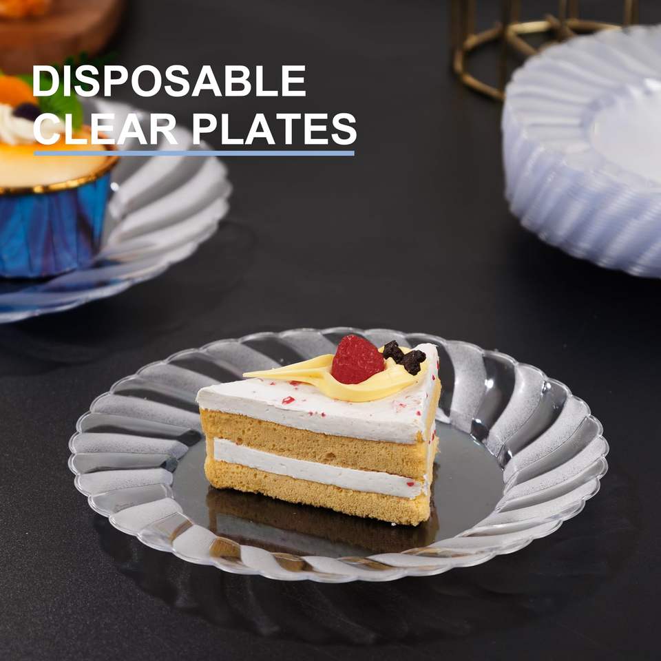 Assiettes à dessert jetables transparentes en plastique de 6 pouces - Biodégradables, écologiques, robustes, qualité supérieure pour gâteaux, bonbons et fêtes
