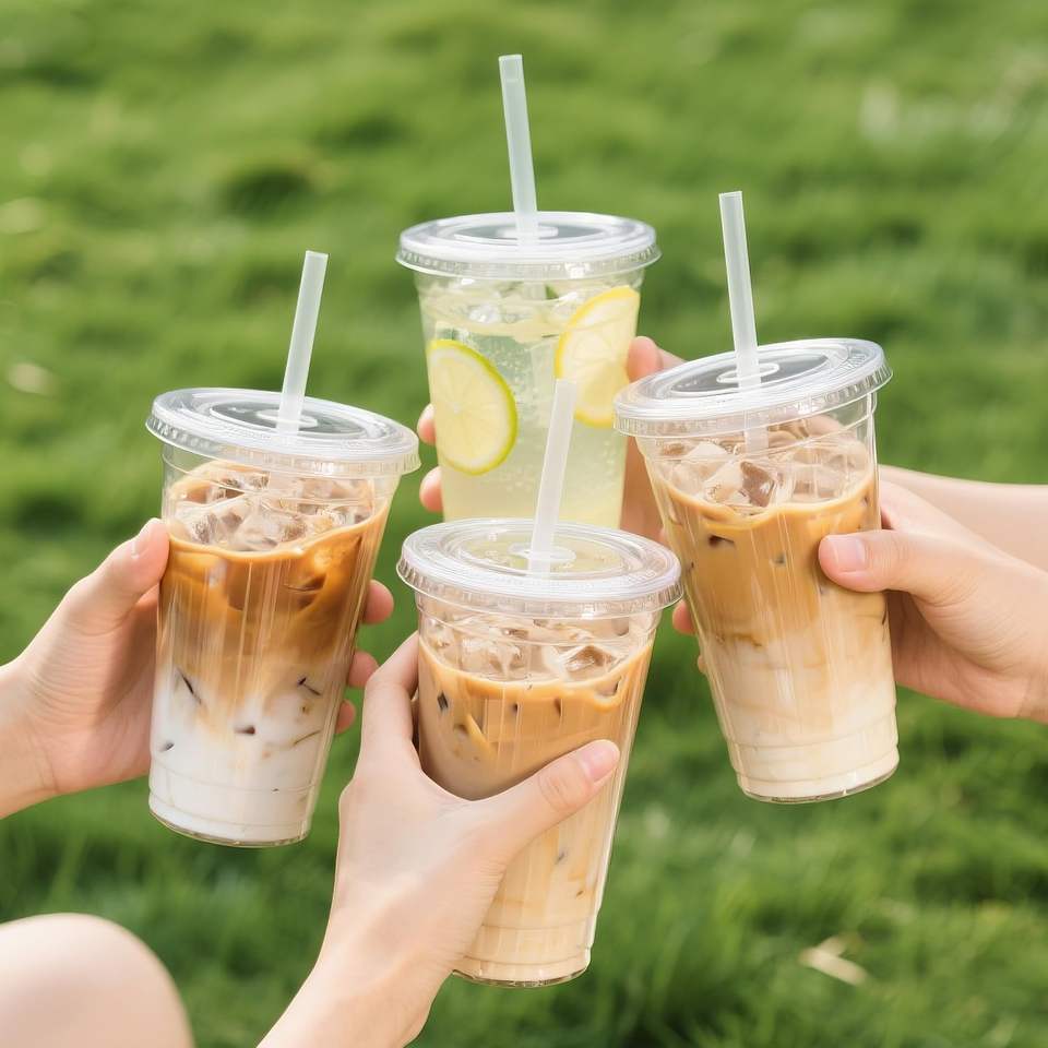 Gobelets jetables transparents anti-fuite pour boissons à emporter