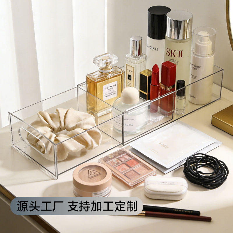 Organisateur de tiroir en plastique transparent extensible multi-usages, bac de rangement rectangulaire à longueur réglable pour cosmétiques, maison, cuisine, bureau