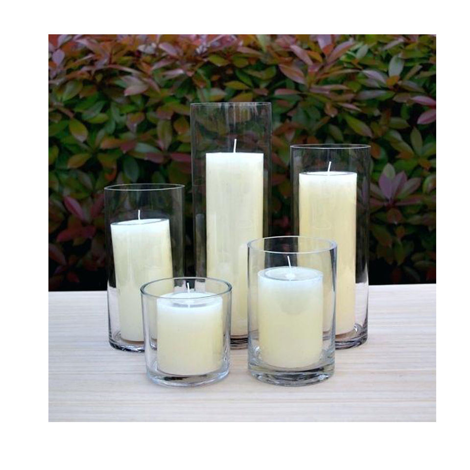 Verre clair Cylendrical Pilier Bougeoir Pots