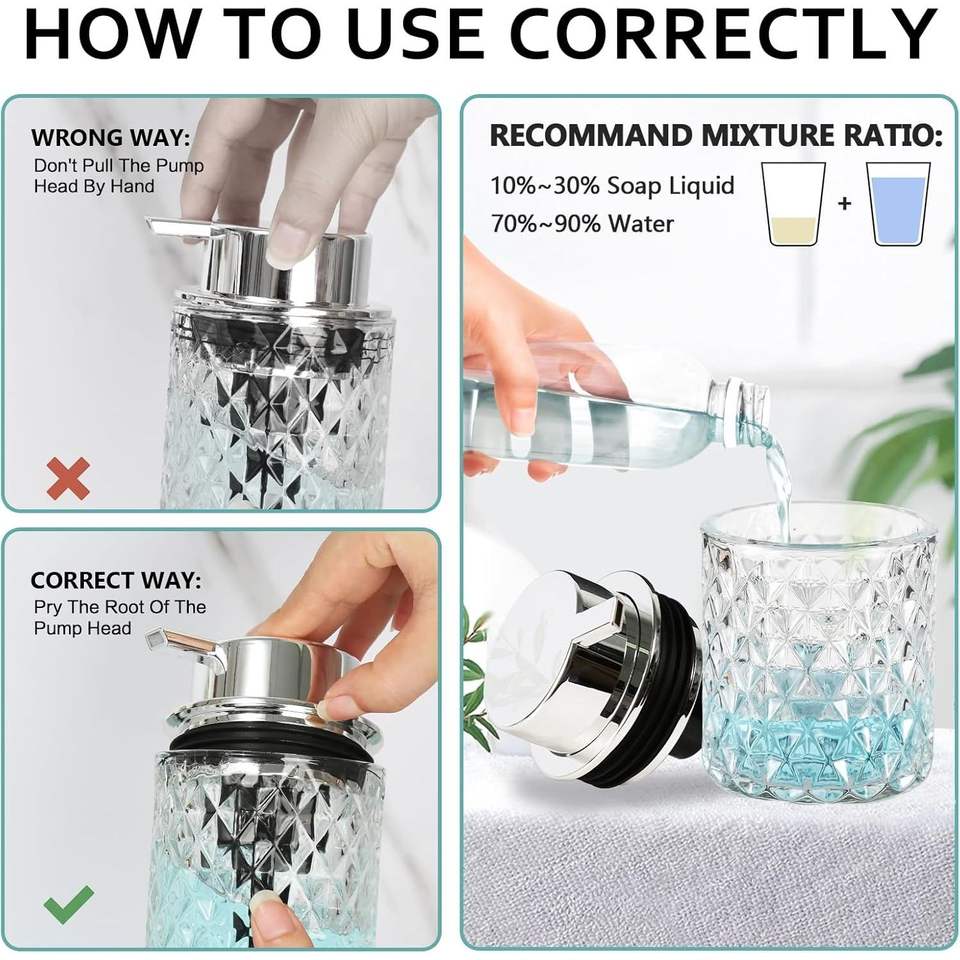 Distributeur de savon moussant pour les mains en verre transparent, 7,8 oz, flacon pompe en plastique rechargeable, distributeurs de savon liquide pour salle de bain