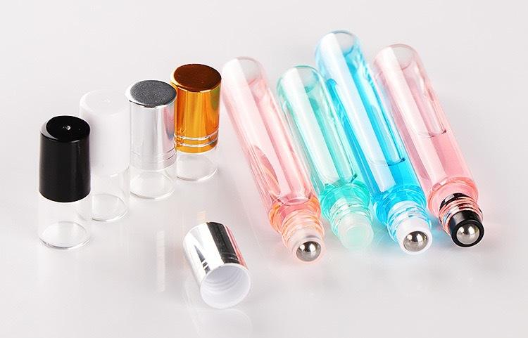 Bouteilles roulantes en verre transparent pour huiles essentielles Tailles de 1ml 5ml 15ml avec bouchons en plastique blanc et boules roulantes en verre Bocaux en verre