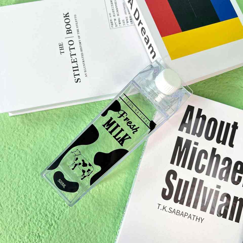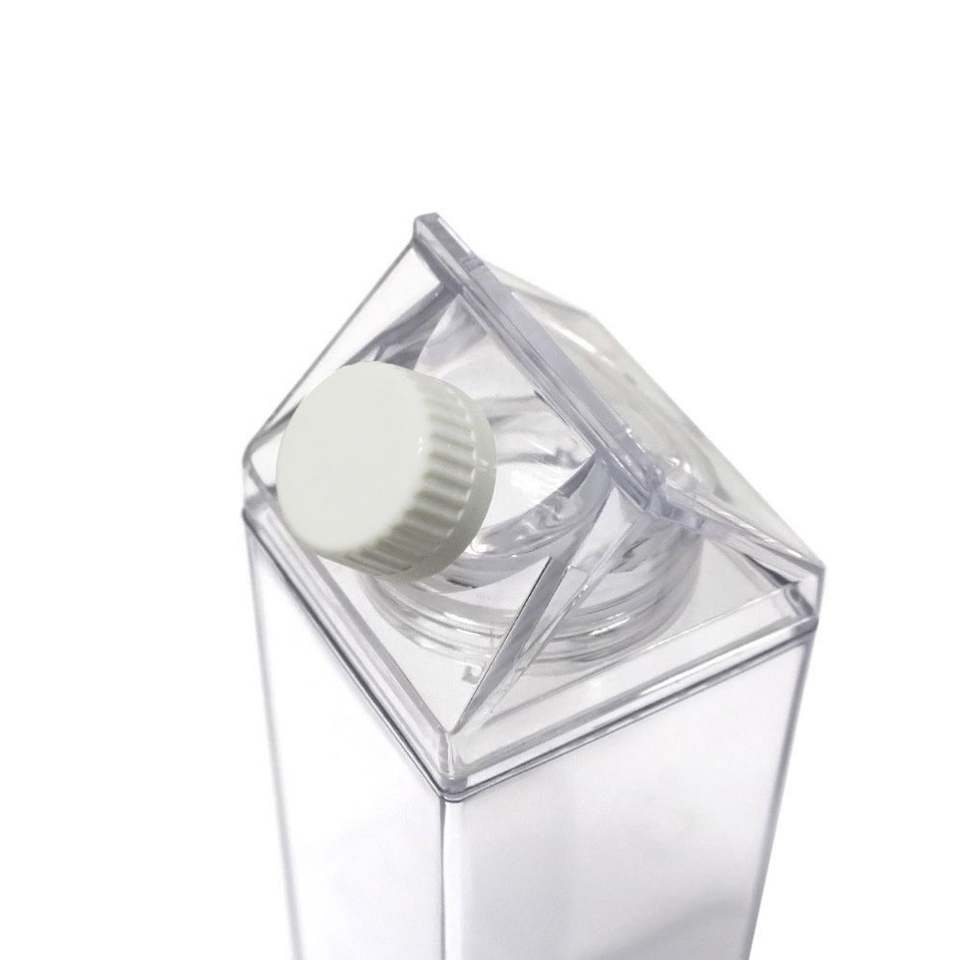 Bouteille d'eau en carton de lait transparente 0,5L 1L Bouteille de lait en acrylique Bouchons à vis en plastique Bouteille d'eau Contenant alimentaire