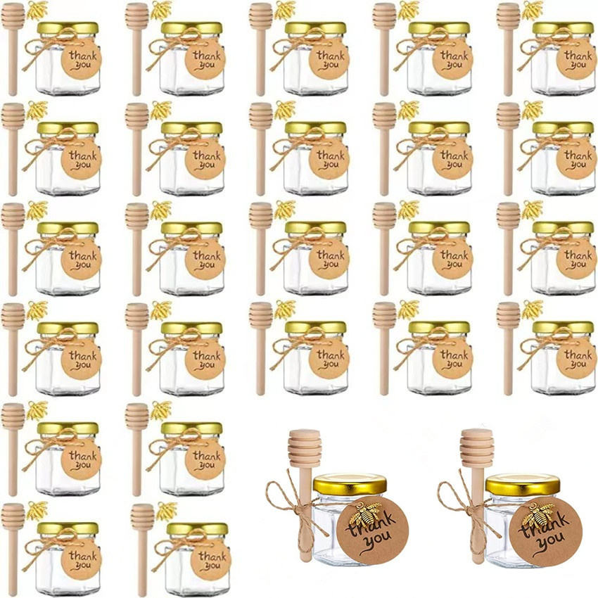 Clear Mini 45ml Hexagon Round Glass Honey Jar Set for Wedding Table Gifts for Guests Souvenirs