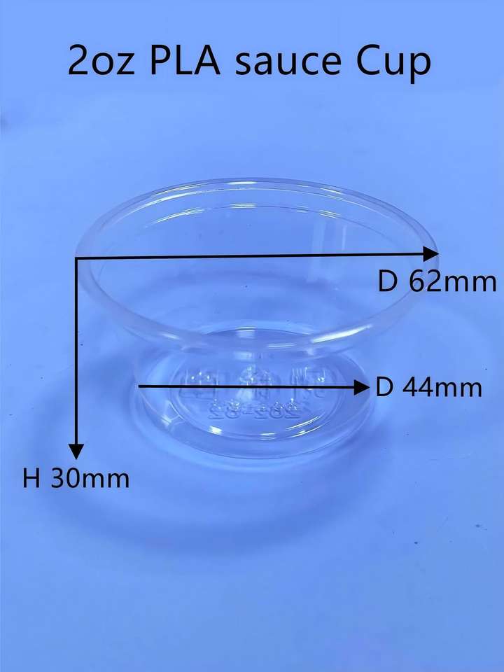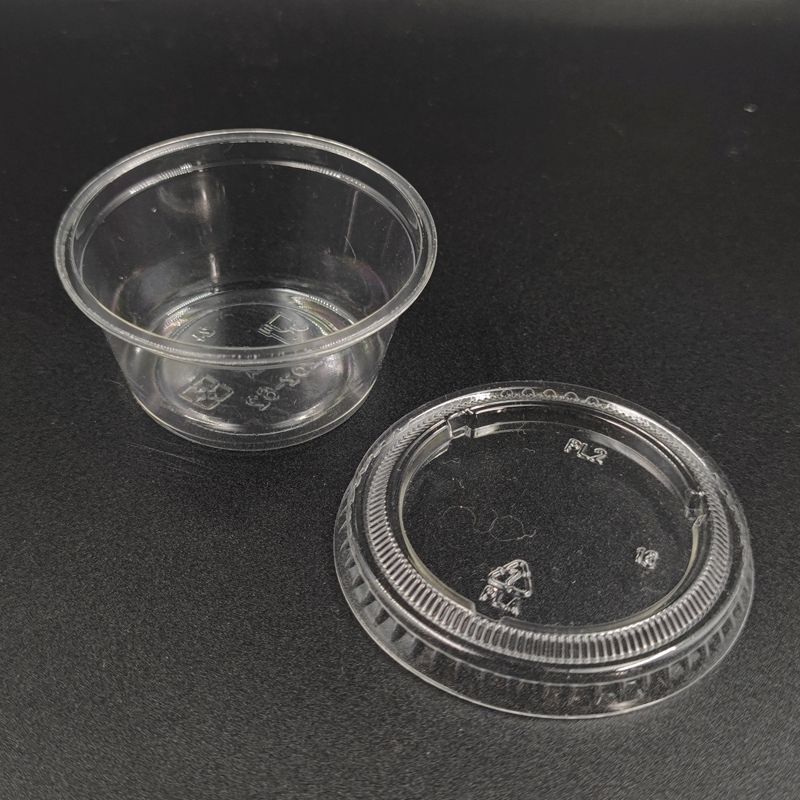 Les pots jetables compostables clairs de portion de PLA emportent la tasse ronde de sauce bioplastique avec des couvercles