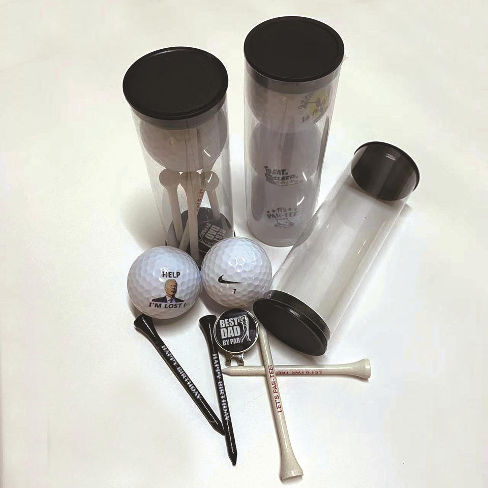 Tube cylindrique en PVC transparent noir pour balles de golf 45X135mm Emballage cylindrique transparent personnalisable