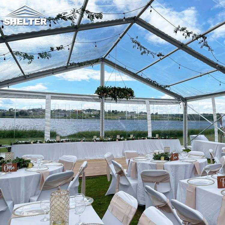 Tente de fête transparente en PVC 400 places, tente de mariage avec intérieur de luxe