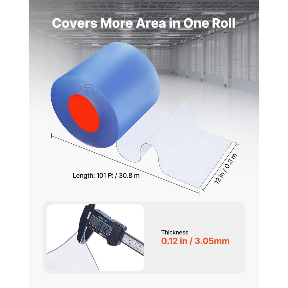 Rideau à bandes en PVC transparent, 101 pieds de long x 12 de large, isolation thermique, bande de porte en plastique, rouleau en vrac pour congélateur, chambre froide, entrepôt