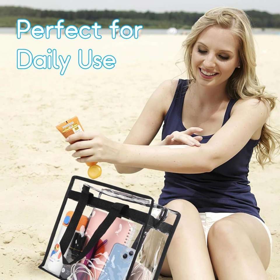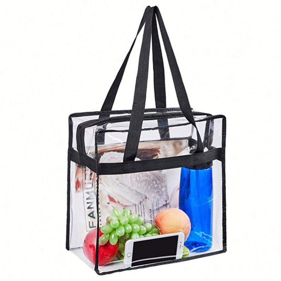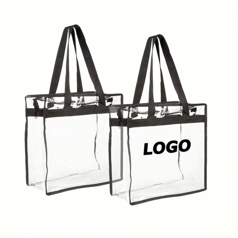 Sac fourre-tout transparent en PVC pour les voyages et le shopping, sac de rangement réutilisable transparent avec poignées pour cadeaux promotionnels et marquage