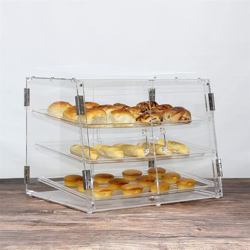 Vitrine commerciale de boulangerie Surface polie en acrylique transparent pliable à 3 couches (PMMA) pour l'affichage de pâtisserie