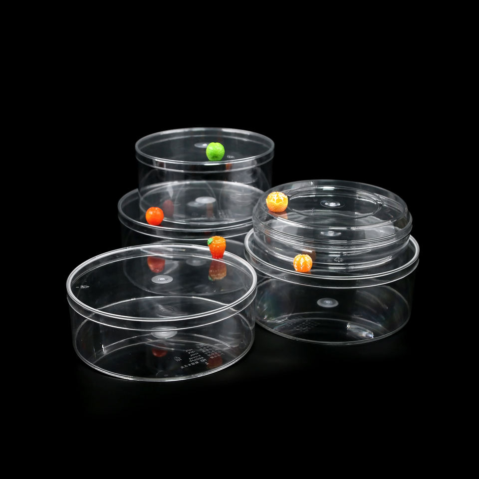 Récipient en plastique transparent bacs à bonbons ronds hermétiques Ps boîte d'emballage de chocolat de faveur de mariage