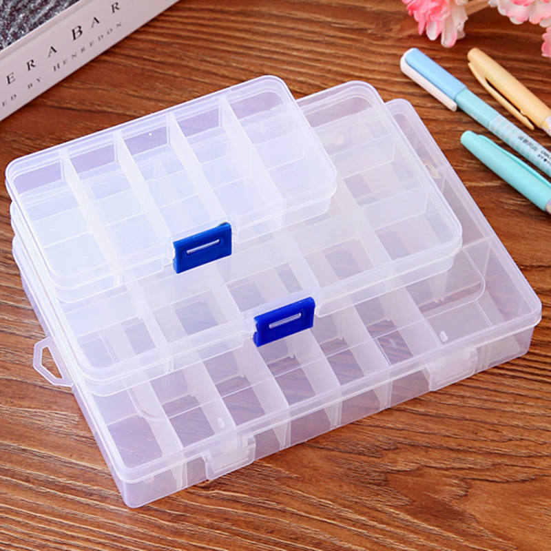 Boîte de rangement pour bijoux en plastique transparent, 24 compartiments, avec couvercle, pour petites pièces et accessoires, utilisation sur bureau