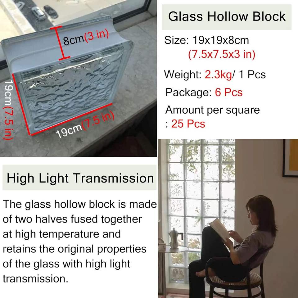 Briques de verre transparentes solides, blocs pour cloison de douche, séparateur décoratif pour salon, chambre, cuisine, intérieur et extérieur, clôture, lot de 6