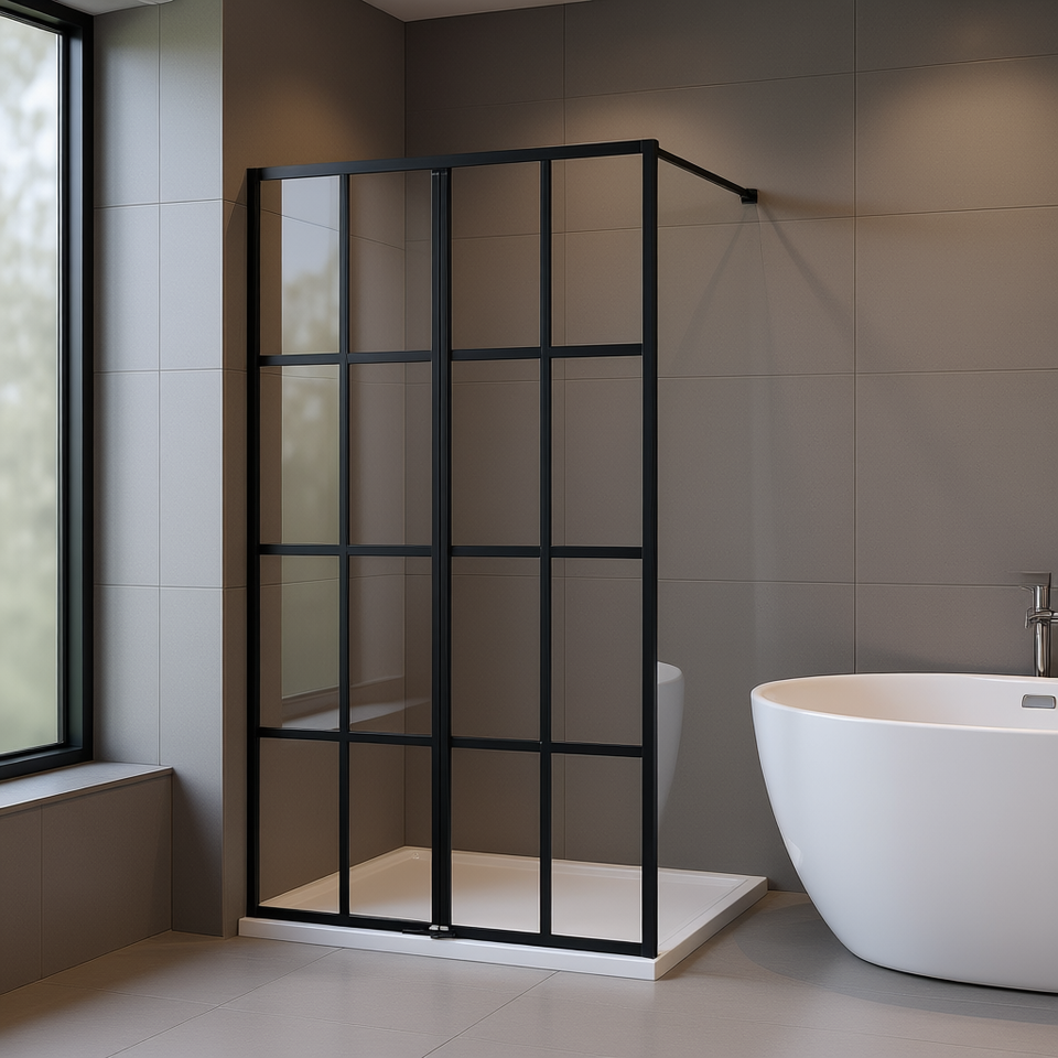 Paroi de douche en verre trempé transparent 31,5x76,8 pouces avec cadre, porte coulissante, design minimaliste, épaisseur 6 mm