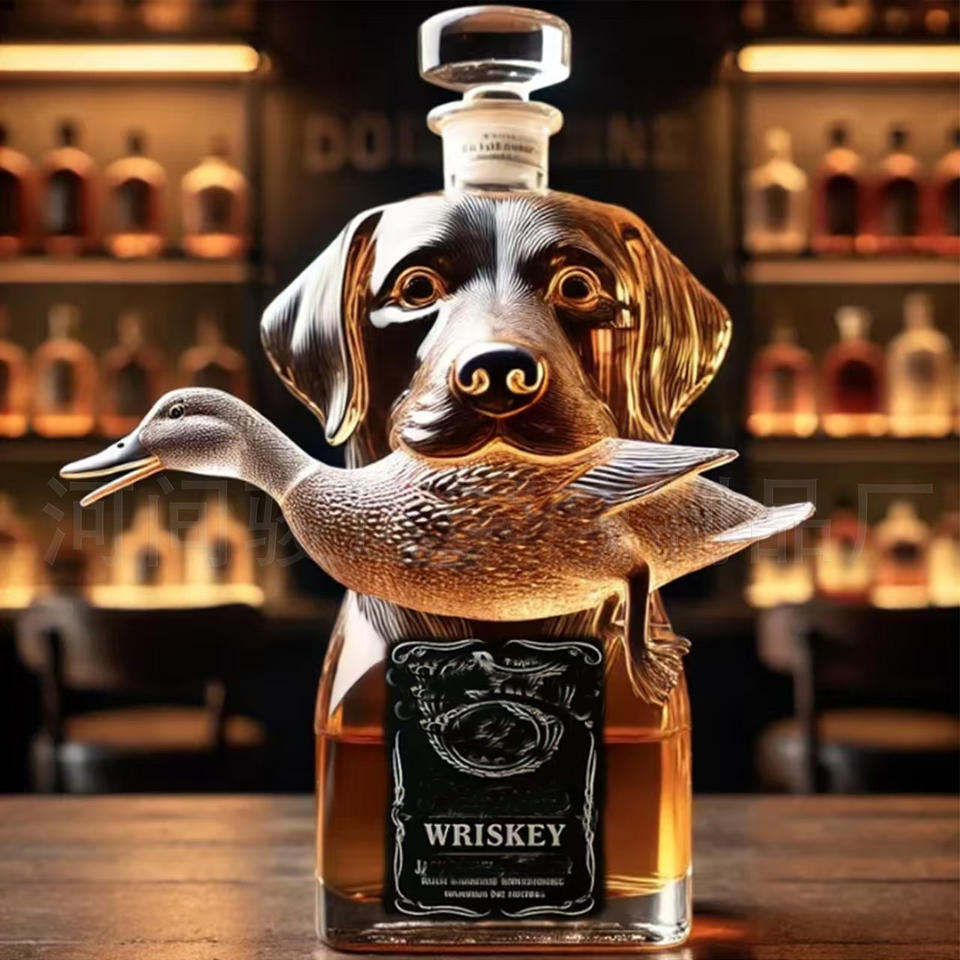 Carafe en verre transparent en forme de chien, bouteille à whisky unique et intéressante pour le whisky