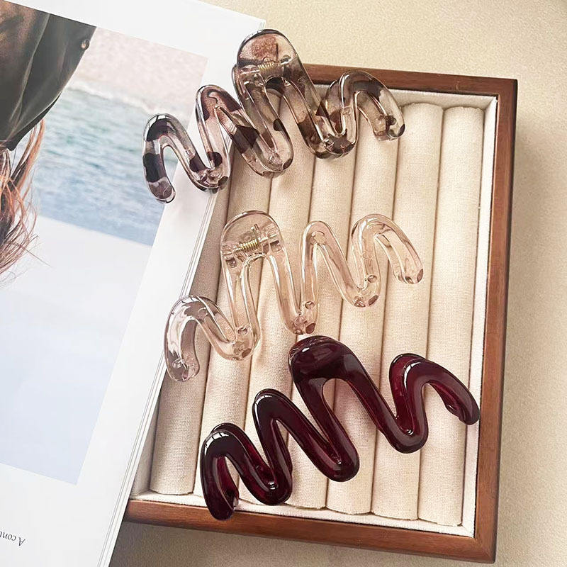 Pinces à cheveux transparentes à motif vague, grandes pinces requin transparentes pour femmes, pinces à cheveux en plastique pour cheveux épais, vente en gros