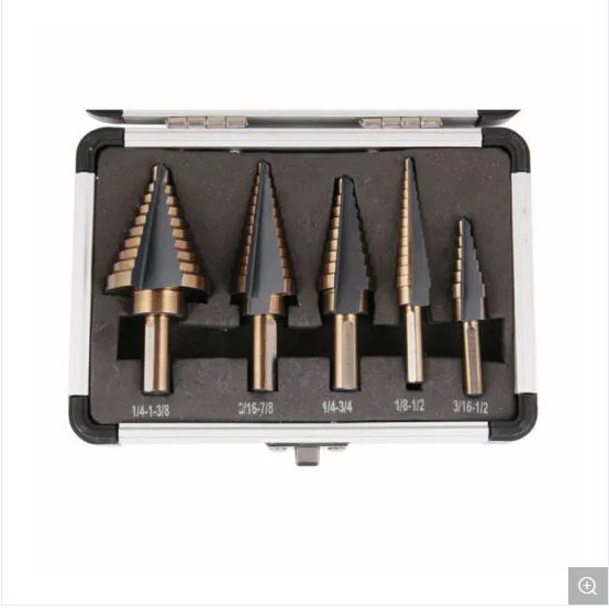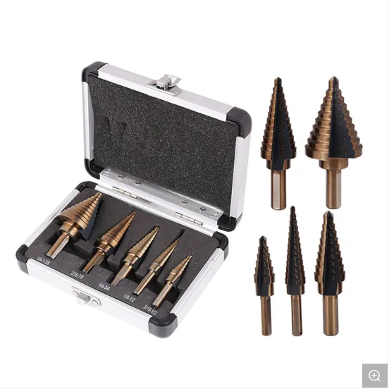 Soldes de liquidation : Lot de 5 forets étagés coniques à rainure droite en titane pour métaux, personnalisables