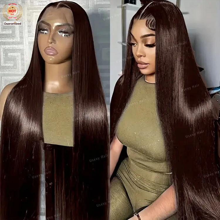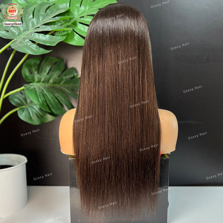 Liquidation vente haute qualité unique dessiné perruques de cheveux humains vietnamien brun foncé droite dentelle avant pour les femmes noires