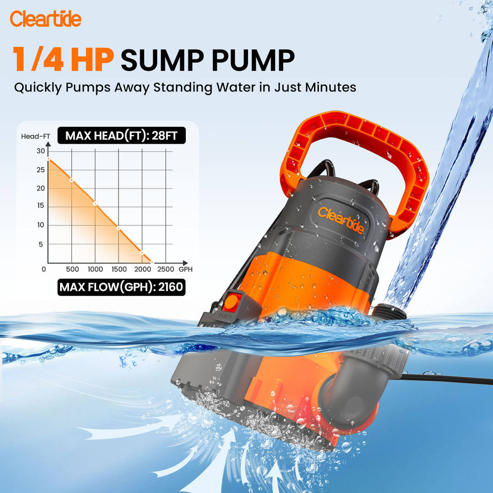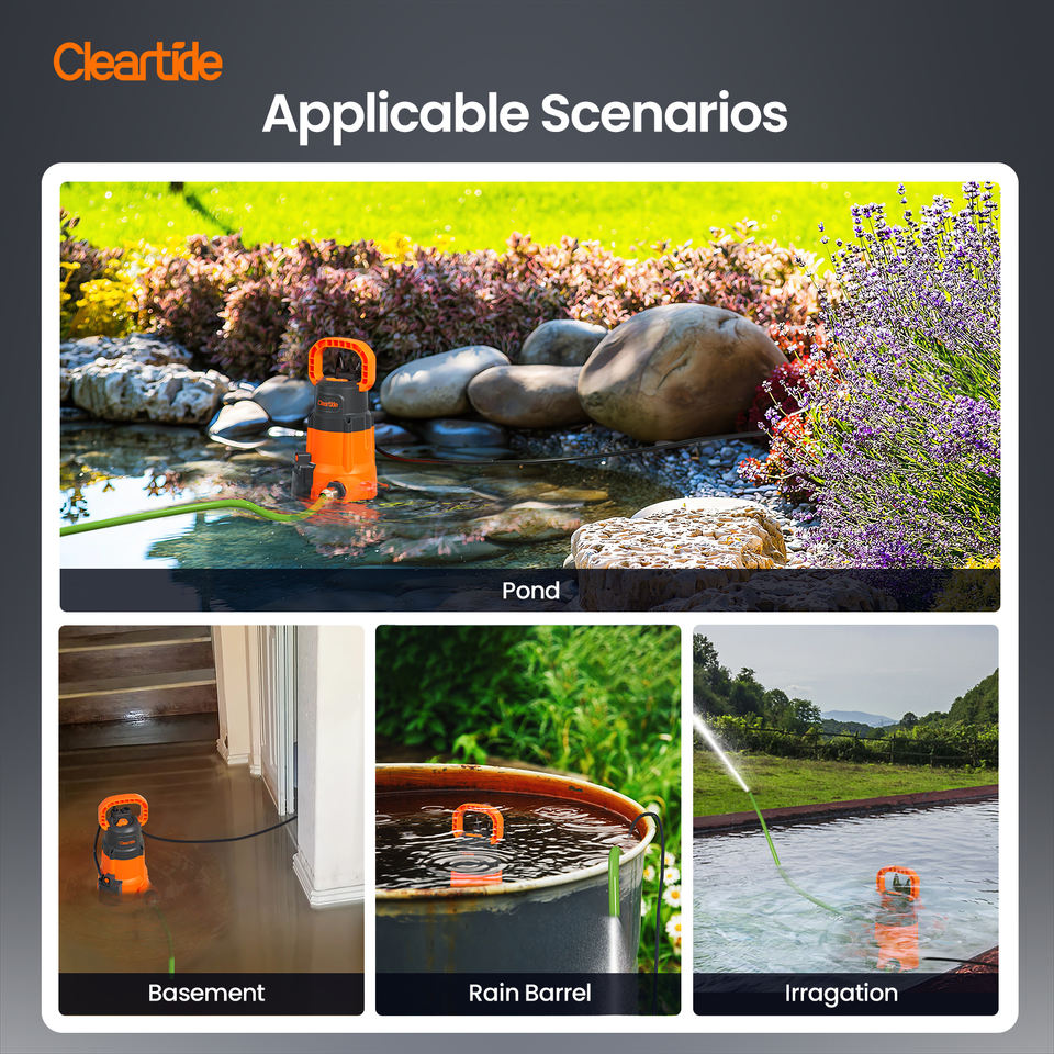 Pompe à eau submersible électrique 2 en 1 Cleartide, pompe de drainage automatique, pompe de déshumidification pour l'irrigation, l'agriculture, les étangs