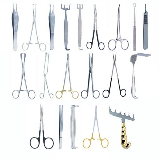 Palette d'instruments de chirurgie, gamme d'instruments, 20 pièces