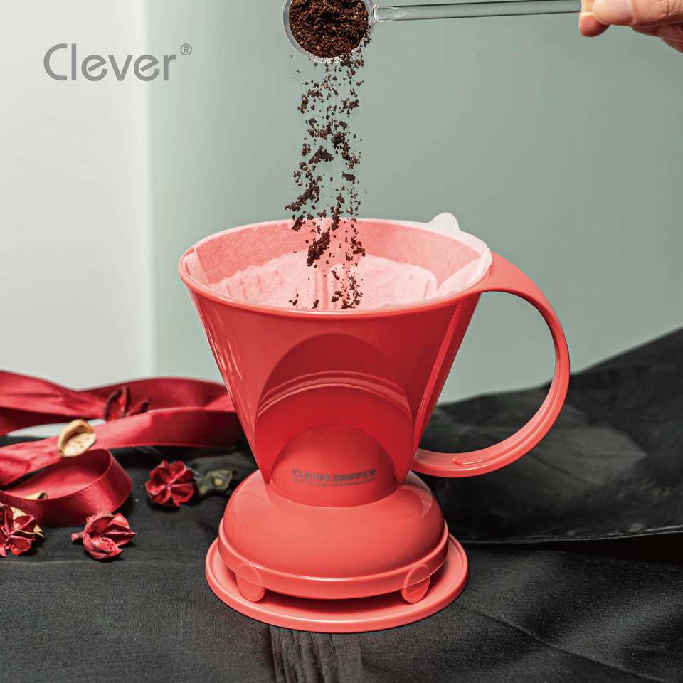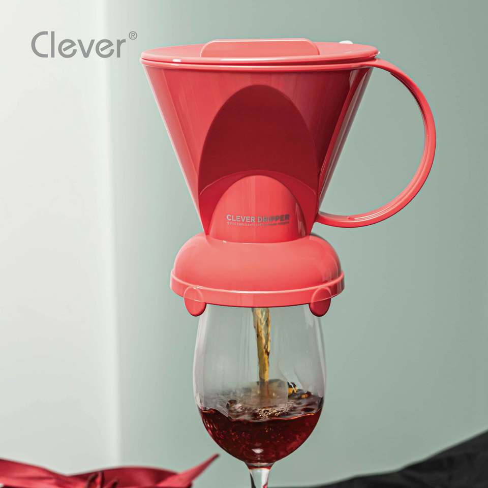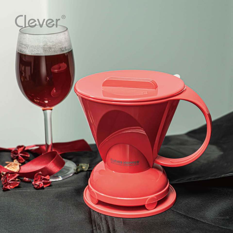 Clever Dripper Mr. Grand gobelet à café en plastique Tritan, trapézoïdal, rouge corail, minimaliste, de qualité alimentaire, écologique et intelligent, pour événements d'entreprise