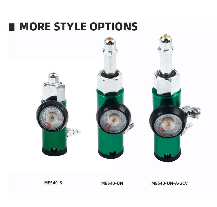 Régulateur d'oxygène de style clic avec débitmètre, construction en laiton et aluminium, marque MEDEASE