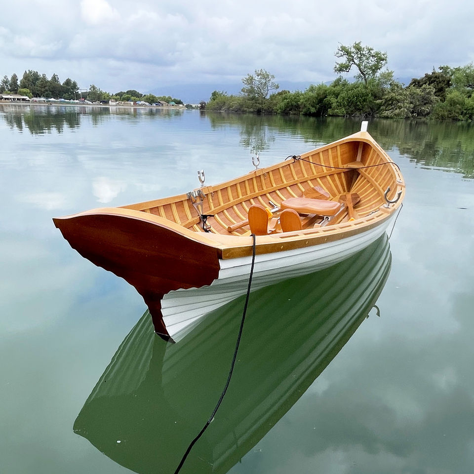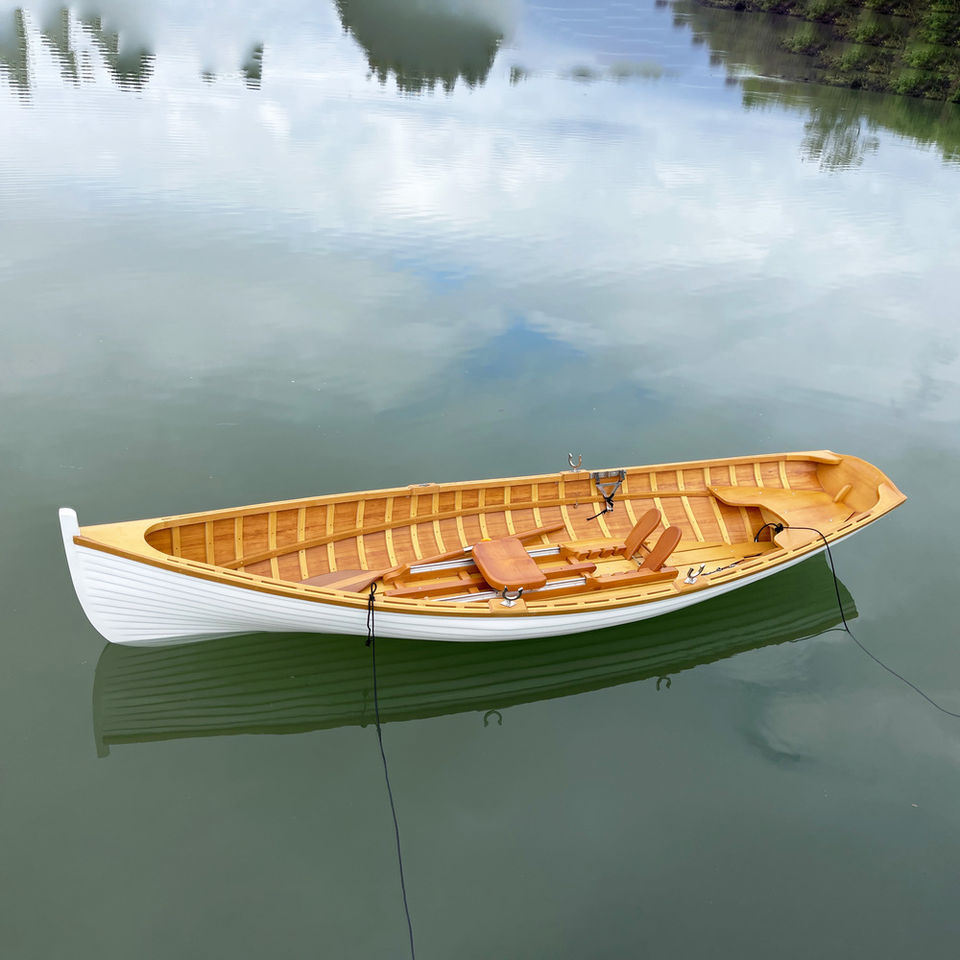 Bateau à rames en bois Whitehall de 12 pieds avec renfort en gelcoat, double siège sécurisé pour 2 personnes, idéal pour la pêche et les aventures estivales (375Lx104Wx68H)