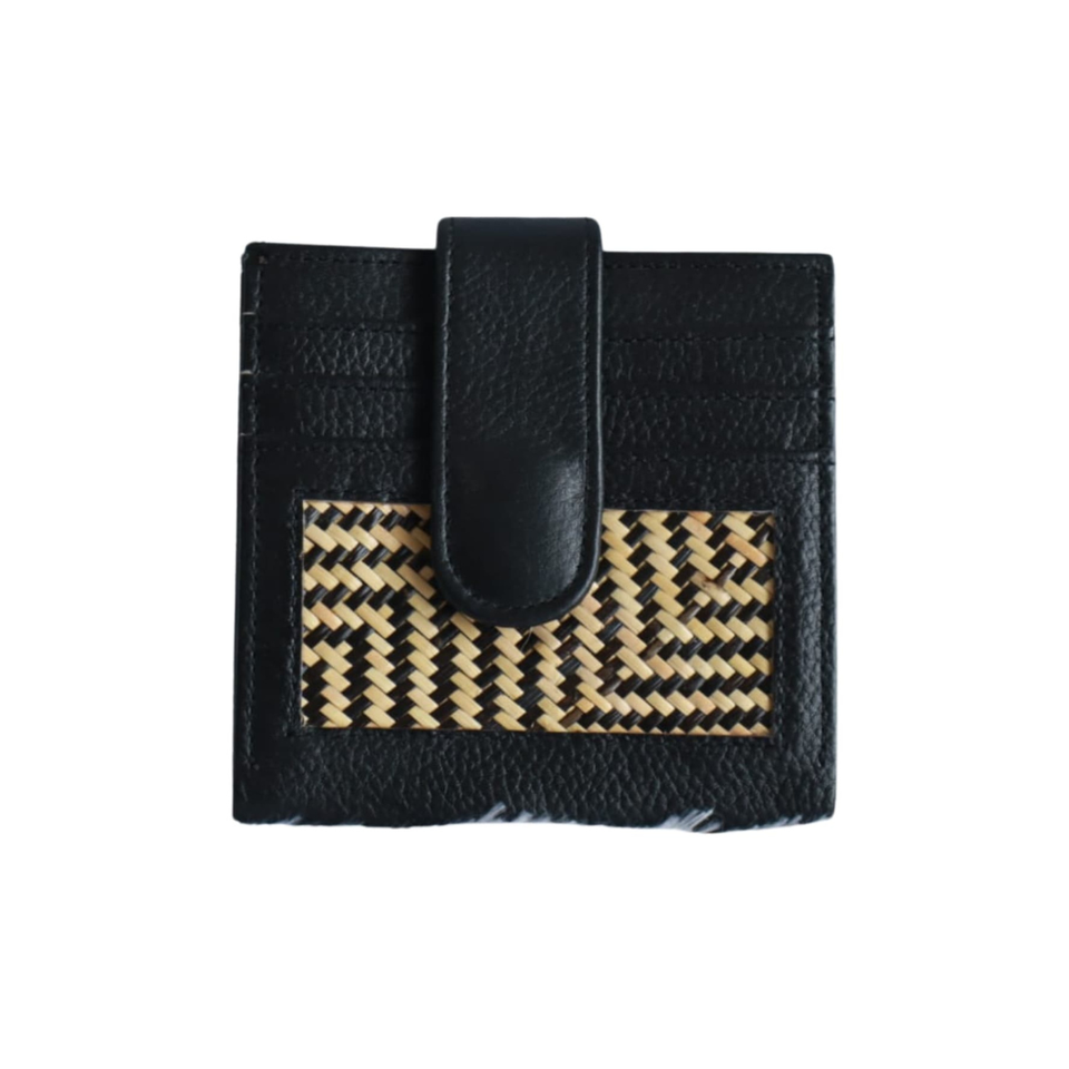 Indang Apang Galeri Porte-cartes à pince en rotin en cuir véritable d'Indonésie avec fermeture à bouton