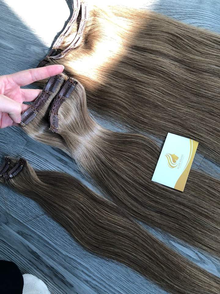 Clip dans l'extension de cheveux 100% cheveux humains vietnamiens en gros luxe Top qualité Remy cheveux humains Invisible sans couture