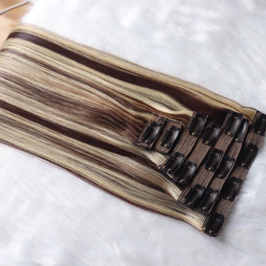 Extensions de cheveux 100% naturels Remy lisses à clips, cheveux humains vierges, reflets de couleur naturelle, vente en gros, prix