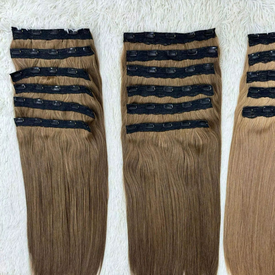 Extensions de cheveux à clipser 100% cheveux humains naturels, extensions de cheveux vietnamiens Remy noirs naturels pour femmes